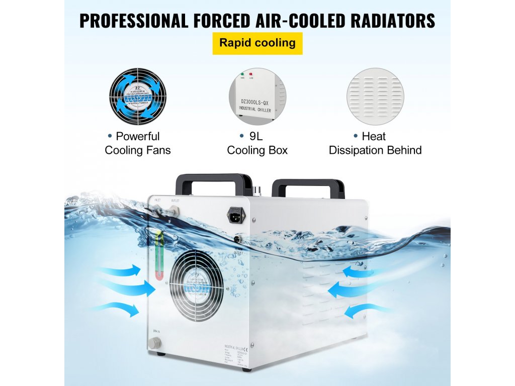 CW - 3000 (DZ3000LS-QX) - je aktivní průmyslové chlazení, které disponuje výkonnou chladící soustavou, která v principu snižuje teplotu chladícího média až na teplotu v místnosti.